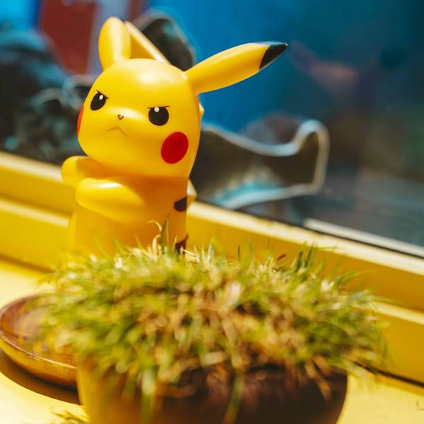 小泰一行人匆匆忙忙的赶到咖啡店,小店生意很好,哪怕天空飘着大雨,也不乏有撑伞排队的人们。柠檬黄的韩式装修风格,不由的想到一只黄色的小精灵。小泰也自觉加入了队伍中。店里很小,最多5,6人就显得拥挤了,小泰四处打望,终于在一角发现了睡觉的“老鼠”。原来那只会放电的小精灵真的是 皮卡 丘!小泰把它抱在了怀中,结果是:“十万伏特!”皮卡丘傲娇的插着双手,有些生气。