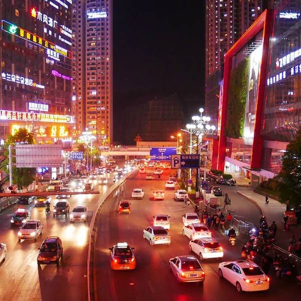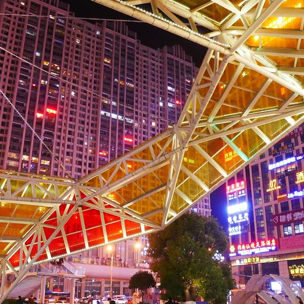 的确在来到贵阳这个城市之前,给我的印象一直是没什么存在感,甚至觉得在国内是相对落后的地方,但是夜晚的贵阳彻底颠覆了我之前的看法,确确实实把各地的游人都惊艳了一把。花果园是贵阳市的市中心,虽然也从当地居民口中听说了很多对于花果园规划的抱怨,比如计划入住人口50万,现在还不到一半就导致交通拥堵问题非常严重。但是温柔夜色下的这座城市仿佛加了一层滤镜,鳞次栉比的大楼,车如流水马如龙的街道,五彩斑斓的绚丽灯光,一切都让人无比喜爱和留恋这样的花花世界。多彩似乎是贵州的标志 ,处处颜色亮丽鲜艳,艳丽却不俗气,充满了贵州的地域特色。花果园购物中心作为市区的地标建筑物,造型非常别致,形同一颗被切割开的宝石,从内部散发出多彩的光芒。
