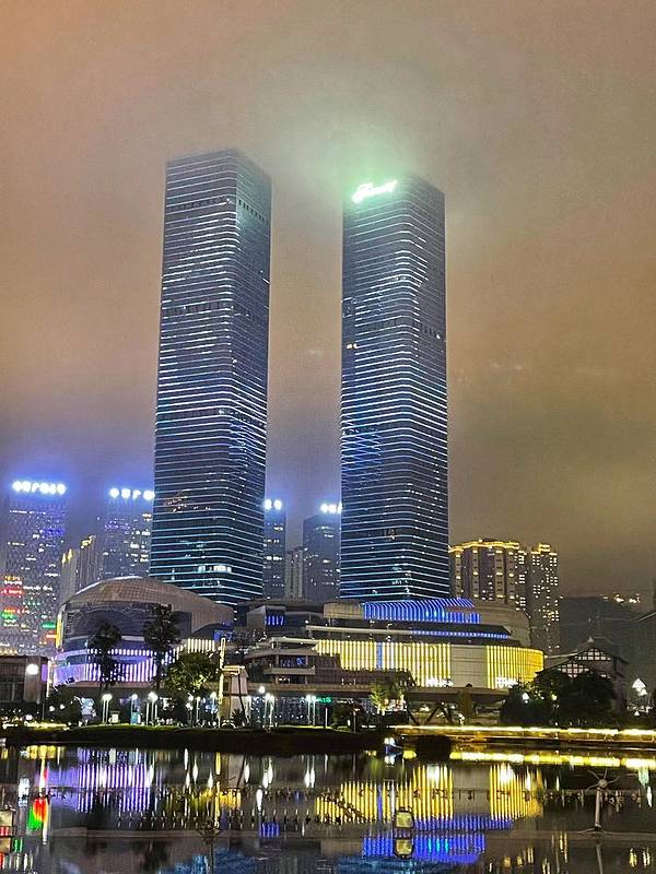 欣赏双子塔和白宫的最佳位置就是黄果园购物中心宜北町旁边的广场。黄果园购物中心吃的还挺多,逛累了可以选择一个靠窗的位置点餐。花果园双子塔