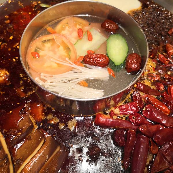 位于万达广场附近的谭鸭血火锅,位置还是挺好找的。点了鸳鸯锅底儿,清汤的那边可以用来喝汤。辣汤的锅底浓厚,和在四川吃的差不多。