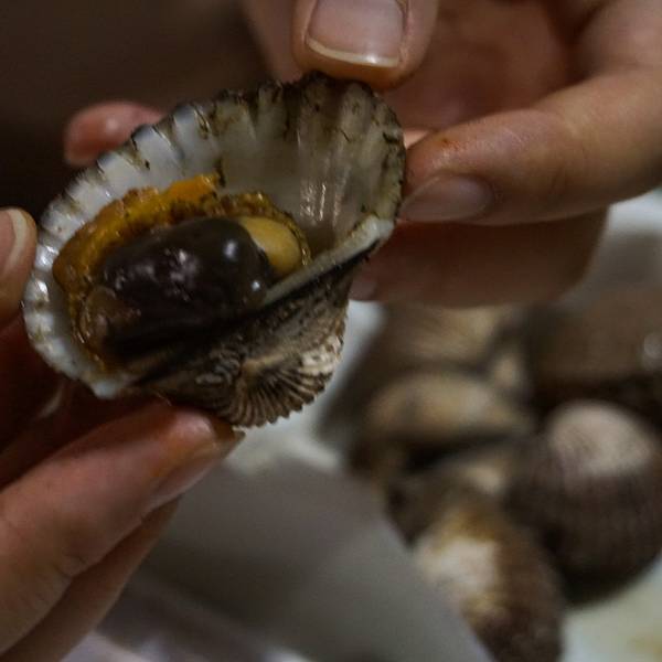 口感居然是脆的!它吃起来还蛮特别的!而且这样现买现做出来的海鲜真的好吃!让我们有点不习惯