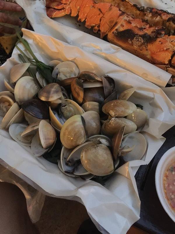 我尤其爱这个烤虾。海鲜非常新鲜,个头大肉质紧实,口感鲜甜。我喜欢这样的鲜活的市场,特别富有生气