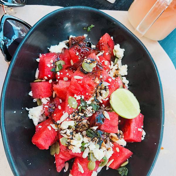 家居咖啡馆? 反正拍照超好看,随便拍!哪里都能出片~~~~ 而且东西也蛮好吃的,特别是那个土豆坨坨,是点餐叫员工推荐的,不错~~~~嘻嘻,好喜欢这张照片~西瓜上面放酱油? 无法理解这不就是中国酱香饼。。。但是...