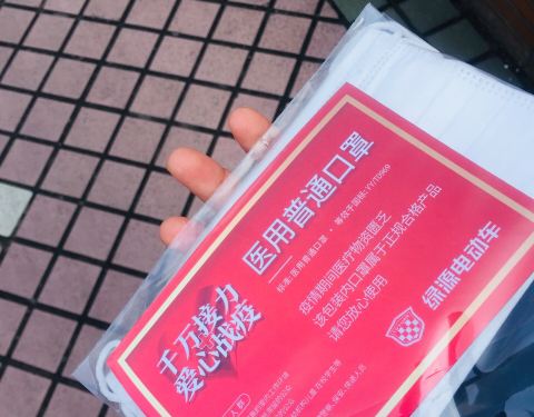 绿源电动车之前参加的活动免费领取,一次性口罩体验的爱心礼包,一共有四片。我比较近,拿店里的小哥哥在忙着修理查看,但还是很及时的接待了我。