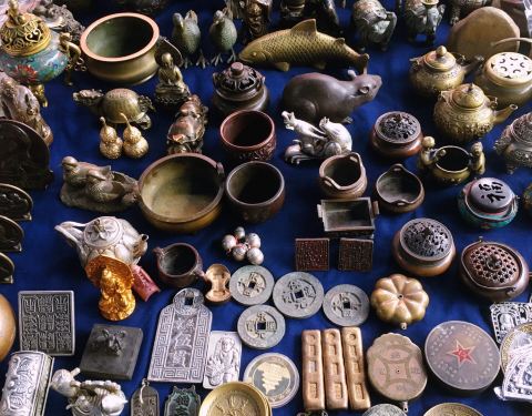 难得周末有闲,天气阴天不热,决定到古玩城的跳蚤市场逛逛。到的时候摊子已经摆满了,各种各样的好像古玩的艺术品摆满了,左看右看,反正也不懂,不过直觉就是所谓的艺术品了,只是做旧了,看到了香炉,还有工兵...