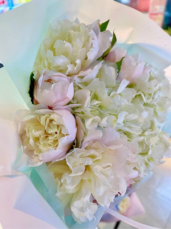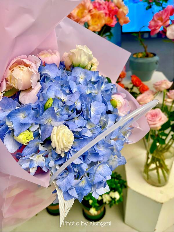 芍药很美,挑了一束淡蓝色的,拿回家插在...偶遇盒马芍药集市,好多种类的芍药花呀,花色温柔优雅,春天的气息扑面而来。