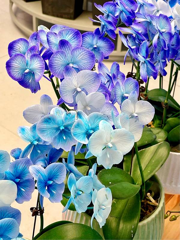 芍药很美,挑了一束淡蓝色的,拿回家插在花瓶里,心情好靓。
