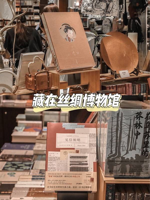 “总理造访过的书店”、“老牌书屋”、“杭州最美书店”……如今在网上搜索晓风书屋时,大多会出现这样的关键词。 始创于1996年的晓风书屋,在杭州有不少实体门店,浙一医院分店、浙报传媒分店、浙大紫金港分店、良渚博物馆分店……不过让我没想到的是,在中国丝绸博物馆,居然也藏着一家低调的晓风书屋! 有别于其它分店,这家晓风书屋主要以丝绸为主题,“C位”书籍全部是丝绸类专题图书!丝绸类、服装类、设计类的书籍在这里独占鳌头,和整个博物馆的主题是非常契合! 除去丝绸类图书外,这里还有人文、设计、生活类图书,以及各种学习用品、笔墨纸砚、甚至于手工艺品,喜欢文创周边的,真的可以在这里逛很久很久~