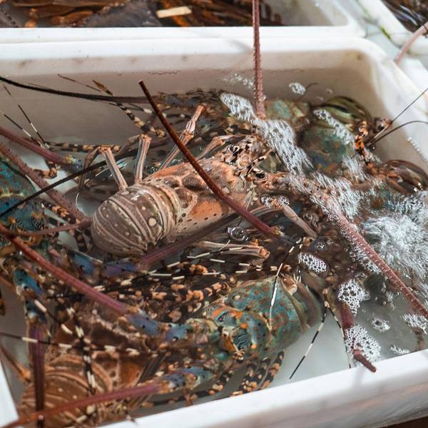 从酒店步行200米就是“八所渔港”,旁边是一个海鲜市场,品种挺多的,很多当地人也在这里采购。我们两本身胃口不大,琳琅满目的海鲜挑花了眼,最后看中了这个颜值比较高的大花龙,开价380/斤,我们还价到350/斤(...