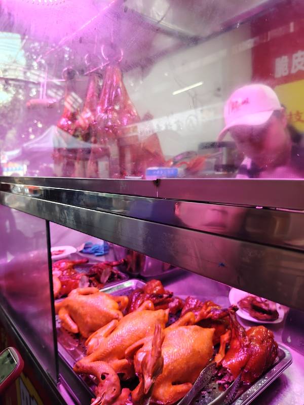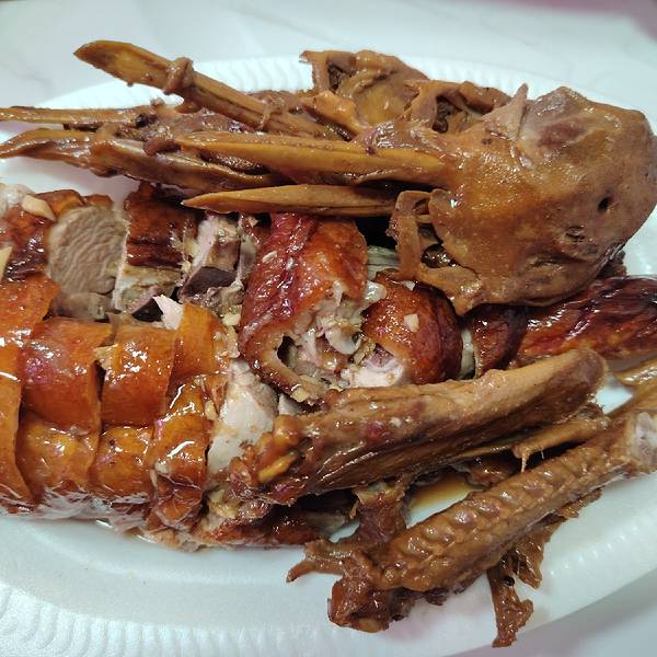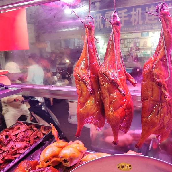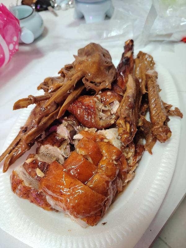 菜市里竟有如此好吃的烧鸭和卤水鸭头、鸭翅膀! 这两种美食确实很新鲜,都是当天杀的鸭子做的,很入味。关键是价格实惠,烧鸭16.8元一斤,卤水鸭头2元一个,鸭脚、翅1.5元一个,好便宜啊。不要以为便宜没好货,这...