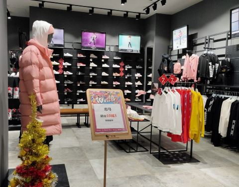 这家分店就位于苏州新区的金鹰国际购物中心内,和其他类似品牌聚集在同一层。商品有运动鞋,运动套装,等