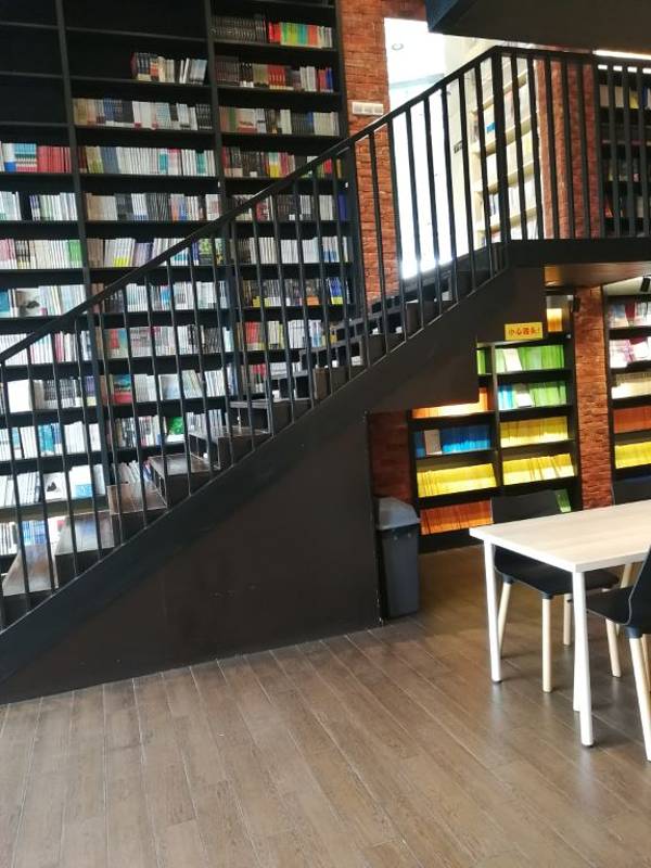 知道这个书店有很长时间了,终于在这个阳光明媚的午后去体验了一把:门面不算大,入口处的陈列显得比较一般,也比较挤,但继续往里走,就有些小惊喜了,有售卖饮品的地方,也有需要消费后才能入座的区域,也有可以“办公”的区域,但最让我喜欢的则是图6的阶梯阅览区。