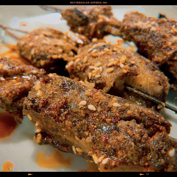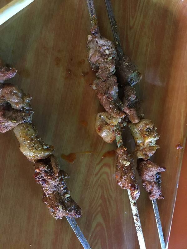 ...了,韭菜没烤熟,金针菇太咸,还大胆尝试了一串大腰子,尿味太重哈哈,还是吃不来的,不过羊肉串不错