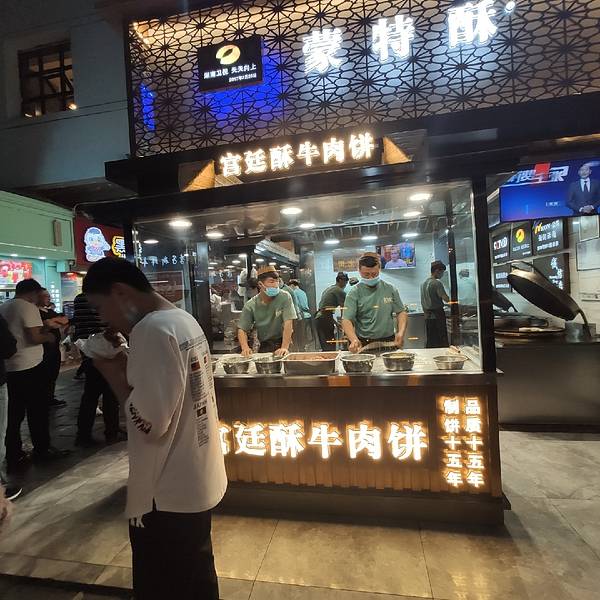 感觉全中国的夜市都是一个样子的,在我转了几圈之后,发现了蒙特酥宫廷牛肉饼。在一个非工作日的晚上,竟然有这么多人排队想想应该就不错。