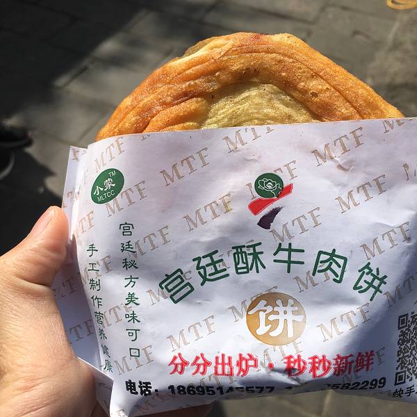 ◇【宫廷牛肉酥饼】其实吃着和北京家门口超市发4块钱一个的没啥区别。。就是现场做和暴雨中也有老多人排队比较壮观吧