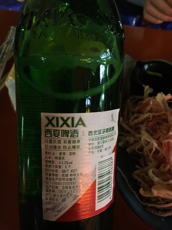 又来夜市啦这个桌牌号还有别的作用呢,开啤酒,厉害了。西夏啤酒本土啤酒,在这边都是喝的这种啤酒羊肉串快吃完了才记得拍烤金针菇烤韭菜毛豆花生芥末鱿鱼个人觉得夜市烧烤很一般,芥末鱿鱼太甜了,韭菜没烤熟,金针菇太咸,还大胆尝试了一串大腰子,尿味太重哈哈,还是吃不来的,不过羊肉串不错!