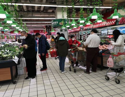 非常时期,店家承诺不涨价,现在一层只开一个门,进门有体温检测,一定要戴口罩哦,里面人不多,人最多的地方就是买菜的档位,商品还是挺丰富的。