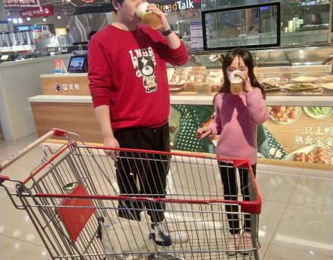 - 去宝山购物中心买东西了,就是楼上家乐福和一楼的miniso买东西,出来去买饮料和小吃了
