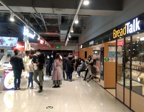 宝山购物中心,去楼上的家乐福和桂源铺,去一楼买蛋糕、小吃、面包、1点点,还有很多吃的都不能堂吃了,外卖打包是没有问题的,但我住的远打包回去不太好吃。