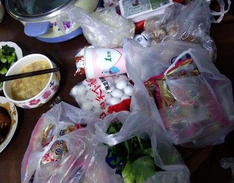 - 这些吃的喝的都是在宝山购物中心买的,家乐福、1点点、马小毛等,很多店都撑不住关门了,剩下的店希...
