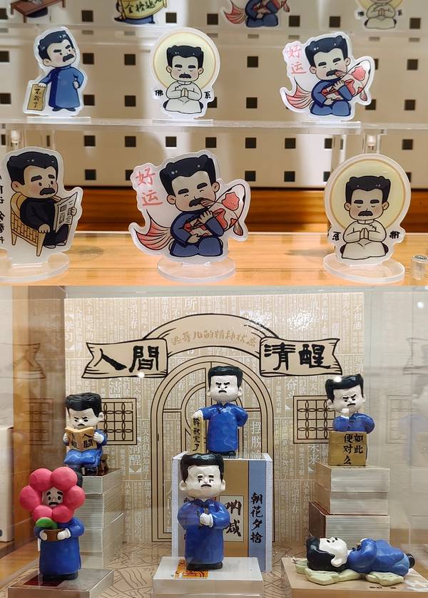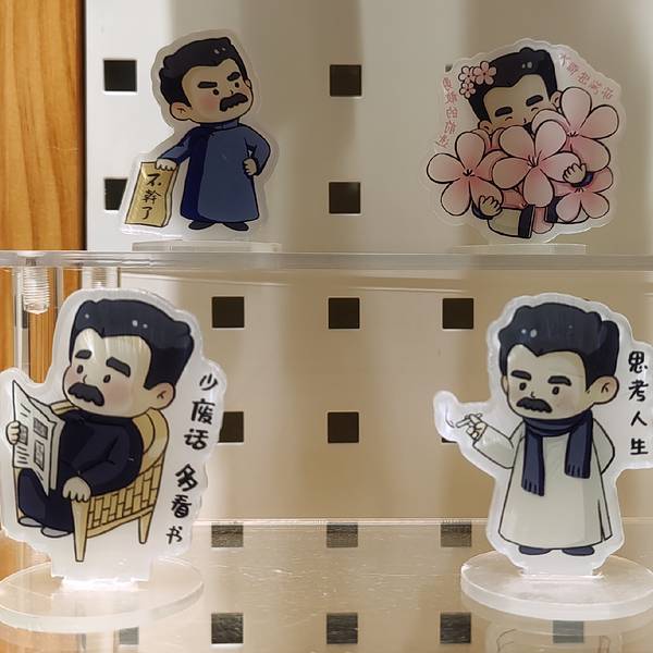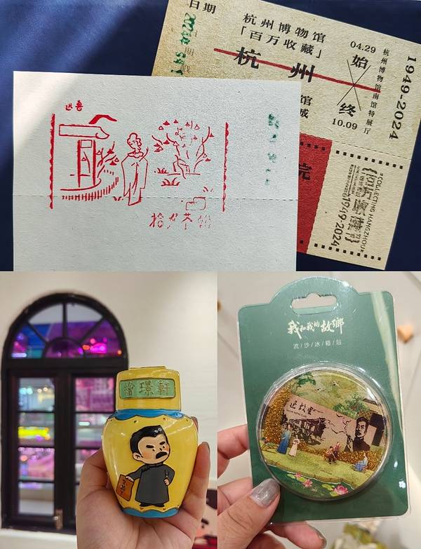 爱逛展的人,这下有福了。杭州解百A座2楼有“了不起的大圣”AR数字主题展,4楼为国货陈列馆,甚至把杭州博物馆的“百万收藏”特展也搬了部分展品过来,开放到晚上十点喔! 入口的“我和我的故乡”文创店,我愿称鲁迅忠粉大本营!不仅有5款免费的印章,还有各种觉醒年代先生盲盒,还有鲁迅先生的“人间清醒”盲盒,迅哥儿爱吃的山楂等甜点,精巧的绍兴花雕酒。 立体的盖章本,复古的口袋书,流麻的金句冰箱贴和杯垫,是谁的DNA动了,疯狂心动啊!没有人能空着手离开,知识以一种奇怪的方式进入我的大脑! 对于吃谷人来说,这些没多大用处的文创,摆在那里就是情绪价值本身啊,就是生活情趣的一部分。别总批判别人的喜好无用,也希望你能拥有多样性的精神追求!!