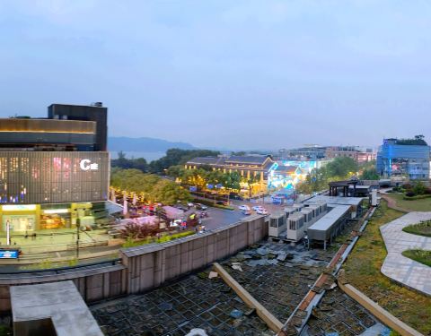 这是在国外吗?辣么美!以前一直不觉得解百有啥可看的,可到天台上发现,我错了!这里被妆扮成一个屋顶花园,四周都是高楼林立,而花园置身于其中,显得格外清新自然!花园有休闲桌椅,可以在阳光明媚的日子感受大自然的气息,还可以远眺西子湖畔和保俶塔,可谓风景极佳!