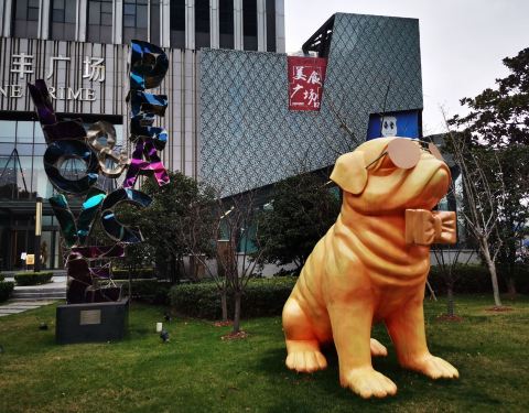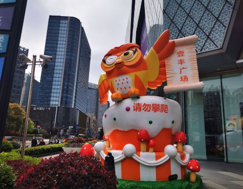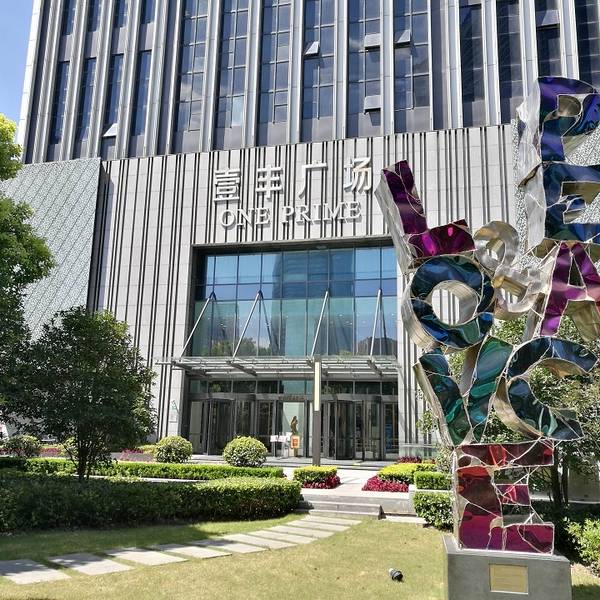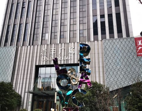 这个壹丰广场(四川北路店)位于上海虹口四川北路和武进路附近的路口,是一座综合性的商业广场。与其他商业广场一样,壹丰广场里也引入了许多商业的业态。不过,壹丰广场的户外花园可能更有特色。除了郁郁葱葱的树林,草坪上的爱与和平现代风格雕塑,成为壹丰广场的一景。