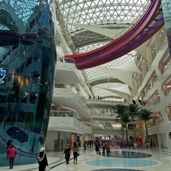 大连中央大道旅游文化购物中心位于大连西部商圈中心地带,属于地标式建筑了,远远望去非常的有气势。门前的青铜狮子雕塑非常的醒目这家商场是一家集休闲、旅游、购物、餐饮、娱乐、读书,蜡像馆为一体的大型娱乐休闲购物场所。早上开业时间为9:30,闭馆时间为21:00,比周边几个商场晚半个小时开业。不过尽管如此,门前仍有很多顾客在等待开门时间。开门的那一瞬间,顾客一拥而入,非常热闹。我是第一次来这里,对这里充满了好奇。一进门左手边的蜡像吸引了很多人驻足观看,拍照,是“水木年华”组合的蜡像。非常的逼真,很多顾客都在怀疑是不是真人秀,看来蜡像很成功啊。蜡像的对面就是一个大型的钟表行,看起来店面很大。抬头向上看,吊灯的灯光非常的有特点,随着时间而改变灯光灯光的颜色。一会是绿色,一会是红色,一会是蓝色........一进门右手边,有很清楚的指示牌,地下为电子商城和售图书的地方,自行200米,是梦露广场,有一个巨大的梦露雕塑,200米,好大的商场啊。商场的电梯非常有档次,代表国内一流的时尚范,有一部滚梯直通顶层,可以从上面一层一层往下逛,另一部电梯是每一层的滚梯。商场很大,每层赋予不同的经营项目,不过感觉里面有很多区域都没正常开业的,估计还需要运作很长的时间。总体来说顾客不是很多,大多数人像我一样,是来看看热闹的,不过说起来应该是比较新颖的一个地方了,理念比传统的商场高了很多。很值得一看