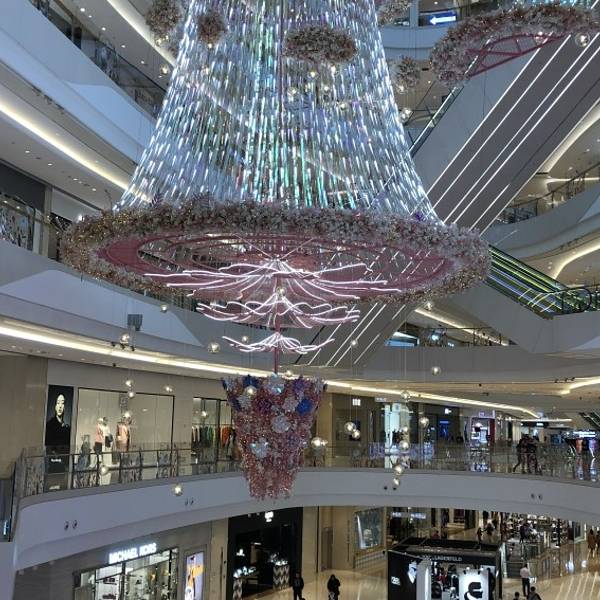 上海万象城,在吴中路上,是一个体量很大的综合性商场。交通也方便,从地铁十号线紫藤路出站,地下通道直接可以进入商场。 上海万象城,商场一楼中厅的装扮,一直是大家围绕拍照的聚集地。 五彩...上海万象城,在吴中路上,是一个体量很大的综合性商场。交通也方便,从地铁十号线紫藤路出站,地下通道直接可以进入商场。 上海万象城,商场一楼中厅的装扮,一直是大家围绕拍照的聚集地。 五彩斑斓的水晶花灯,非常华丽和别致,粉晶色调显得很青春时尚,又带着喜庆,很讨人喜欢。 万象城是一个逛吃的好地方。 万象城,现在人气恢复得蛮好的,工作日的中午,去用餐,还需要等位,希望疫情尽快过去,电影院也可以开业。