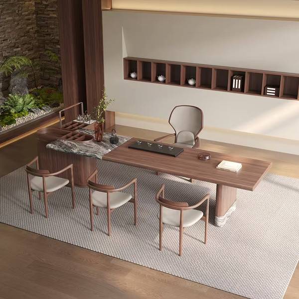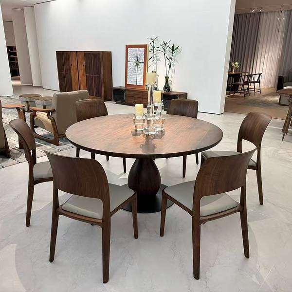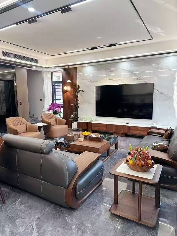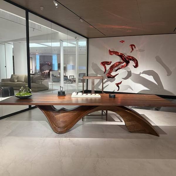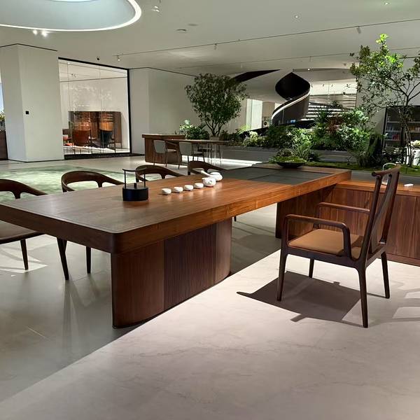 北美胡桃木家具展厅:邂逅自然质感的理想家 走进展厅,目之所及皆是北美胡桃木的温润质感。天然的山水纹理如行云流水般舒展,深浅交错的琥珀色木纹自带时光沉淀的韵味,每一件家具都保留了木材的原生肌理,触感细...
