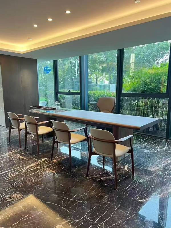 北美胡桃木家具展厅:邂逅自然质感的理想家 走进展厅,目之所及皆是北美胡桃木的温润质感。天然的山水纹理如行云流水般舒展,深浅交错的琥珀色木纹自带时光沉淀的韵味,每一件家具都保留了木材的原生肌理,触感细腻温润,摒弃过度雕琢的匠气。 从简约大气的实木沙发,到线条流畅的餐桌椅,再到收纳与颜值兼具的储物柜,全系列家具将实用功能与自然美学完美融合。无论是现代简约风的客厅,还是沉稳雅致的书房,都能找到适配的款式,轻松打造有温度的家居空间。 在这里,你能触摸到木材的原生呼吸,感受手工打磨的匠心细节。没有花哨的装饰,只有原木与生活的温柔对话,让每一次驻足欣赏,都成为对理想家居生活的沉浸式畅想。