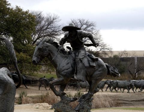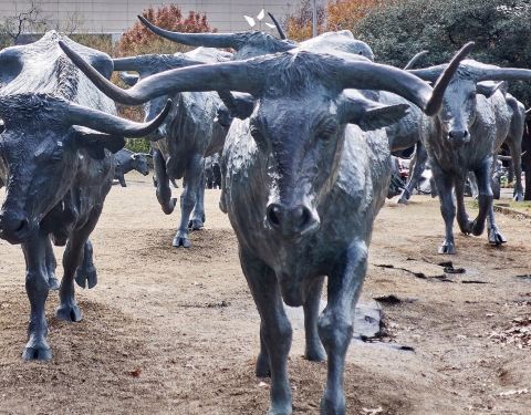 ...所有的位置,雕像反映的是一群被牛仔驱赶着过河的牛,非常的生动和形象,甚至那条河也被人工修建出来