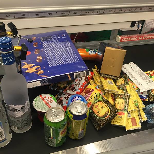 早上我们做巴士回市区,回酒店寄存箱子(并不入住)后就出来找了个餐厅吃饭,然后去了Tsentralnyy Rynok购物中心,从130风情街尽头再往前走一段就能看到,这是当地人去得比较多的一个商场,里面有个很大的超市,我们在里面采购了很多很多巧克力跟酒做手信,俄罗斯简直是酒的天堂!!我们2个比较怂只带了4瓶,我看到有人带5 6瓶的,主要我们回到香港还要过关,就不冒那个险了。酒的话建议直接在超市买,我后来在免税店看价格比超市还贵。买完之后我们吃了个晚饭,回酒店把行李重新收拾了一次,就直接去机场了,愉快的俄罗斯之旅走向尾声~