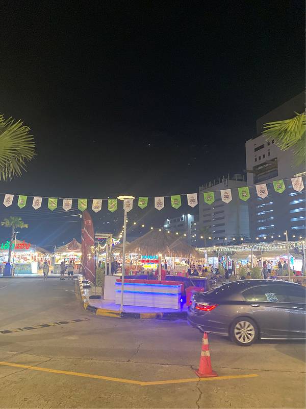 拉查达火车夜市总共划分为四个大区:小吃区,服饰区,二手区和夜店酒吧区,很多人都是先到小吃区逛一圈,吃饱后一边逛服饰区和二手区消食,然后再到酒吧区喝一杯,听听音乐,还有很多街头艺人会停驻在出其不意的拐角做即兴表演,让你的每一个瞬间都充满惊喜和欢乐。因为时间有限,其实只要是为了把主要精力留给各种小吃,服饰区.二手区和夜店酒吧区只能走马观花一览而过。汇集了泰国所有街边美食的火车夜市,不仅品种琳琅满目价格便宜,而且个个店铺老板都是笑容满面,软软婉转的萨瓦迪卡中也是满满的善意。品尝超有味道的火山排骨之后,第二个打卡地--水果西施。这是一个被国内游客拍过无数遍多视频的超级网红,漂亮西施妹妹大方热情不论你是录像还是合影都极其配合,泰国成熟美味的不添加一滴水的纯水果汁超级好喝,可以满足你的一切遐想,特别是相对于国内价格超级便宜。泰国盛产热带水果,平时国内高大上的红毛丹、芭乐、莲雾等简直就是国内的“白菜价”20元人民币多点,熟的刚刚好的榴莲,软糯香甜绝对是国内没法相比的,虽然以外国内游客的原因价格上涨了很多依然是物超所值的。夜市里的各种海鲜都很新鲜个头不小,比起国内北方的海鲜来说鲜味差了一下,浓重的香辛料酱汁调出来了东南亚特有的味道,别有一番风味。 说到这里,不得不提醒大家一句:由于小吃品种超多,千万不要在一家店吃饱,一定要留足肚子多品尝几样.