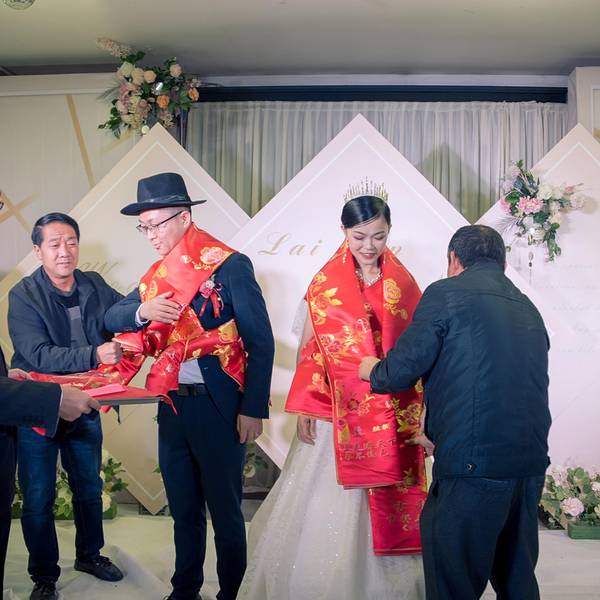 就不得不提一下了,由各个老舅家给新人们披上漂亮的红绸子,挂的越多,祝福越多呀鼓掌 鼓掌 真是好...