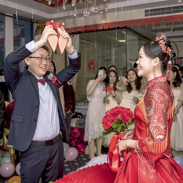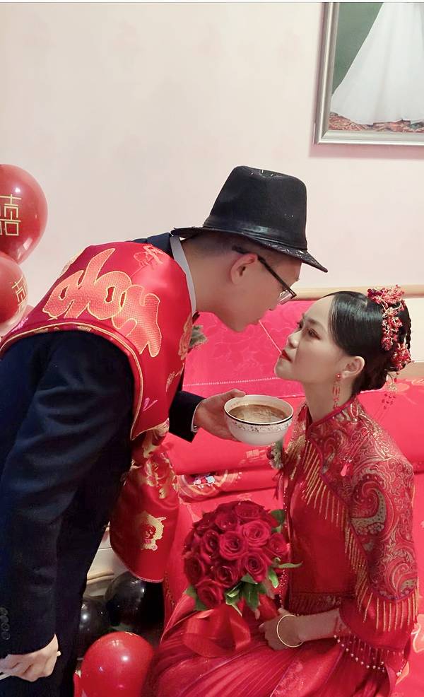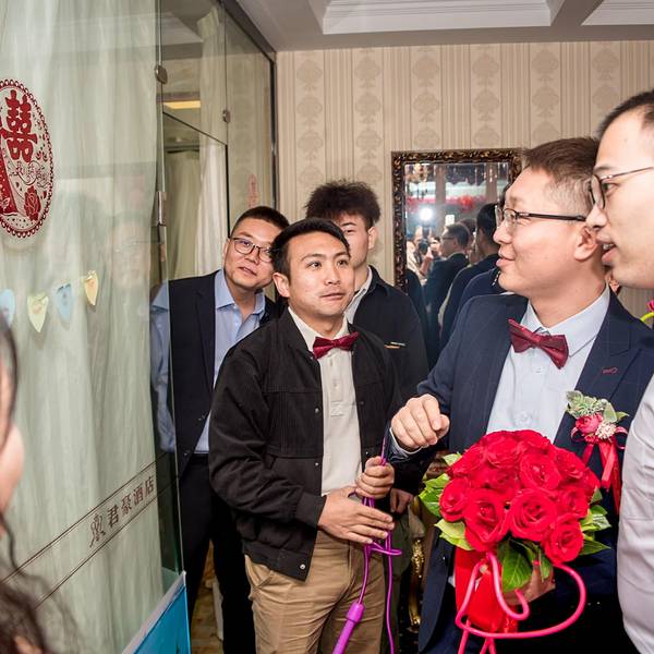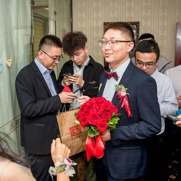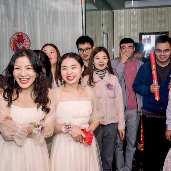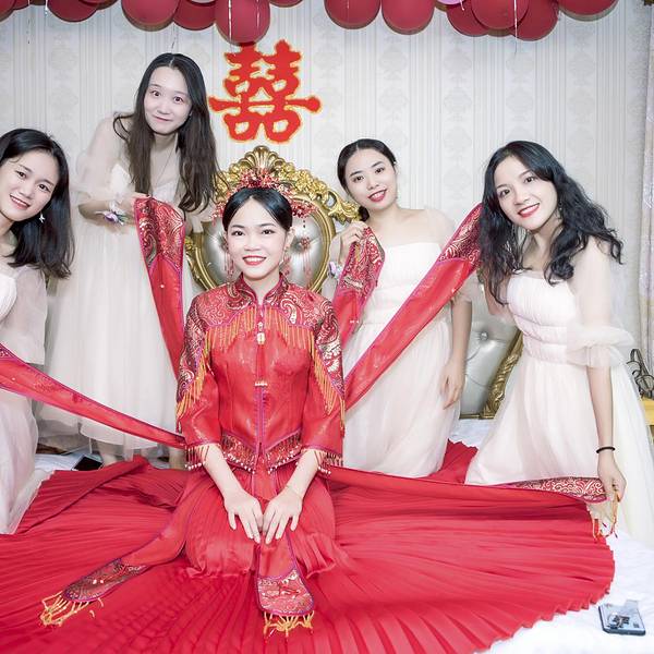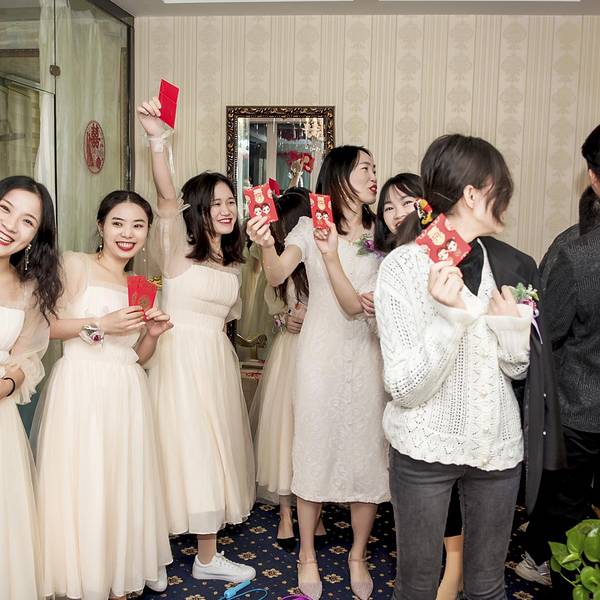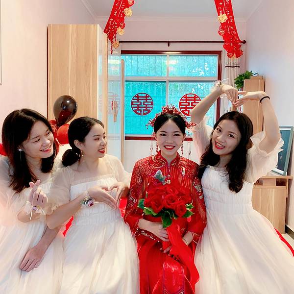4号,终于来啦,先来一个视频~ 一大早,不对,是凌晨4点半我就醒了,哈哈哈哈,就是这么兴奋,起来化妆收拾啦~~我们的专属手花戴起来 转圈呆子的麻麻还在群里呼唤家人们起床呀,真是太温暖了,这张照片~我们绝美的新娘子呆子上线啦玫瑰 玫瑰 撒花撒花✿✿ヽ(°▽°)ノ✿忍不住拍拍拍~~新娘子已准备好啦~~~小来同学,你们快来呀丫 勾引 勾引来看看我们强大的娘家人吧坏笑 坏笑 坏笑哎呀呀,来啦来啦,好紧张哦转圈 转圈 红包先来一波,嘻嘻嘻,想进门可没那么简单哦,就先呆着吧,哈哈哈哈 坏笑 坏笑我不会告诉你们,这帮急不可耐的男士们活生生把门上保险栓推坏了冲进来的白眼 白眼 好吧,既然进来了,那也是要经过我们伴娘团的重重考验才行呀!!!阴险 阴险 第一关:跳绳,每人9下,意为“长长久久”丫偷笑 本来还打算让他们在挤压板上跳的,结果找了一下午也没找到糗大了 跳绳也是幸福的笑脸呀坏笑 坏笑第二关:猜口红印,哈哈哈,小来同学,考验你的时候到啦,看看这一脸疑惑的表情,看来平时工作做的不到位呀第三关:土味情话,要想生活幸福甜蜜,怎么能少了情话呢,看看这一个二个,临阵磨枪,上网百度的样子,哈哈哈哈,平时都是直男没错了本打算说错一个就做俯卧撑的,玩的太嗨,完全忘了擦汗 唉,真是便宜他们了,哼哼哼 接下来就是最后一关:找婚鞋啦,看看我和小蜗这胜利者的微笑,就知道结果啦坏笑 坏笑哈哈哈,老老实实排队发红包偷笑 偷笑 不然不给提示,哈哈哈哈哈哈终于在手里红包鼓鼓的,给他们指了一条明路憨笑 憨笑 谁能想到我还有一个藏在浴缸的后面呢,哈哈哈,我可真是太机智了阴险 阴险找到鞋的小来大声喊出:“我找到鞋啦!媳妇跟我回家吧”,细心的帮呆呆子穿好,哈哈哈然后由亲弟弟背着下楼,上车~~~脸上洋溢着幸福的笑容呀迎娶新媳妇进门咯~~炮仗放起来·····好不热闹快看看我们这个取到新娘子回家的憨憨新郎吧,,,,哈哈哈哈,简直不要太可爱憨笑共吃一碗面,每一根,简直不要太甜蜜我们都很开心能陪你一起出嫁呀~~爱你爱你呀至此,迎亲告一段落,接下来就是仪式啦 鼓掌 鼓掌 我们帅气的新郎从娘家人手里接过我们美丽的新娘,大步向舞台中央走去,迎接所有人对他们的祝福又来到抢捧花环节啦吓 看看伴郎这架势,势在必得可怜 可怜的我占据最佳位置,还是没抢到~一点不绅士,哼哼哼来看看这强大的伴郎伴娘团们坏笑 都是来自五湖四海的哦最美新娘,最美伴娘团····不接受反驳 可爱来一起干了这杯啤酒 ,祝愿他们永远幸福呀这个陕西非常有特色的仪式——披红挂彩,就不得不提一下了,由各个老舅家给新人们披上漂亮的红绸子,挂的越多,祝福越多呀鼓掌 鼓掌 真是好棒的风俗。至此婚礼仪式完美落幕,,呆呆子带我们和家人们一起去老家感受一下陕北风光,传统土窑洞,黄土高原千沟万壑,还有苹果树呀