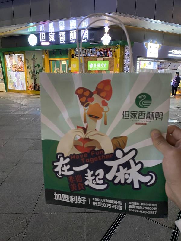 随后,我们就来到了花果园,带朋友感受一下贵阳的白宫,正好附近有香酥鸭,买了一份给朋友品尝一下,朋友直夸好吃!!!这边可以买半只的,一个人也完全能吃完!真的很酥脆!!孜然味比较重,如果不太吃孜然提前和服务员说少点孜然!!