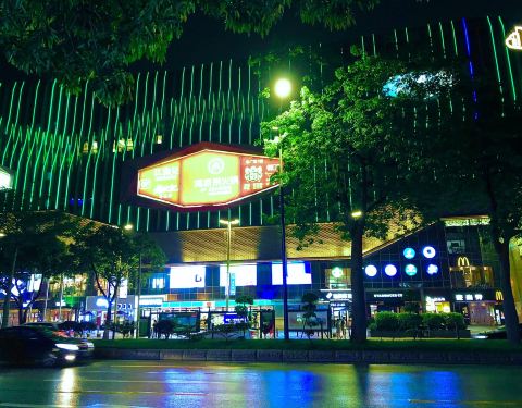 商品算齐全,吃饭,购物都有。有地下停车库,不用担心停车的问题,外广场也挺漂亮,见图