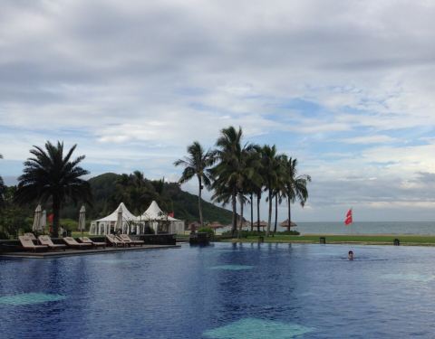 酒店不错,沙滩沙子细,泳池也不错,餐厅早晚有自助,大堂餐厅晚上有面食套餐,不过结束时间挺早好像是五点。另外中午有盖浇饭套餐,48一份,有牛肉鸡肉等等很多口味可以选,送杯饮料,服务也不错。