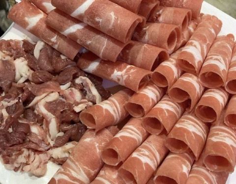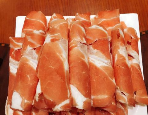 太实惠了!肉片堆着放满。感觉吃火锅还是要涮肉才过瘾!六个人,点的400套餐,含锅底、涮菜、饮料、味碟……合算