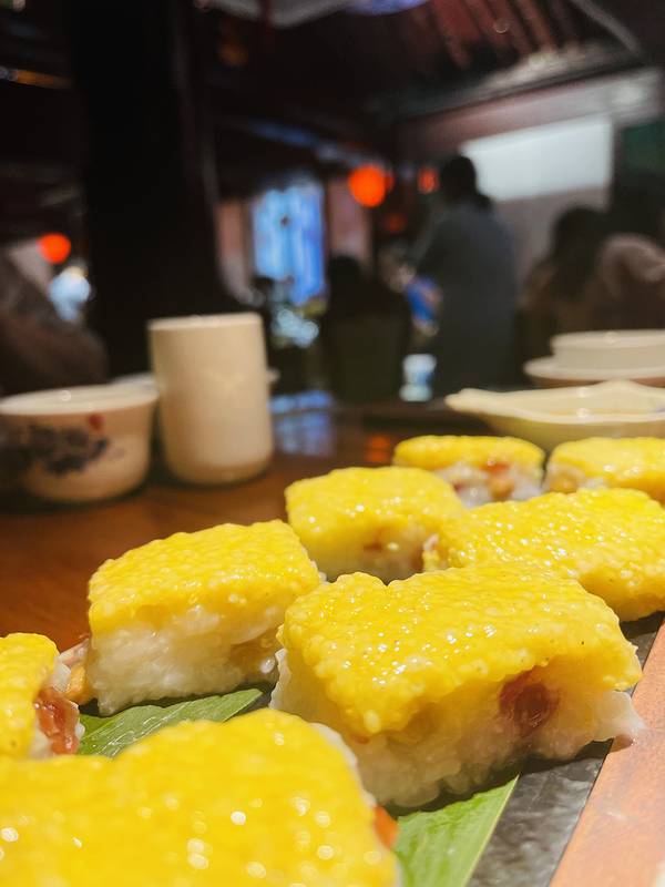 吃炒碗托,一定要去这家,这是我们第一天到的晚餐,没有踩雷。 炒碗托,用粗粮做的,很是劲道,用大火再一炒,配上酥脆的麻花和平遥当地的牛肉,满满的一大口,哇,别提有多满足了!他家不仅有炒碗托,还有很多平遥有名的小吃,泡泡油糕、太谷饼 平遥最出名的蒸碗还是第一次吃,店家告诉我,平遥人一般过节招待客人,便会将四扣碗摆放在桌子上。 地址:衙门街41号 开门时间:9:00-23:00 2个人花费:50