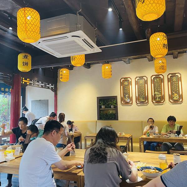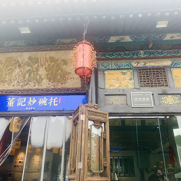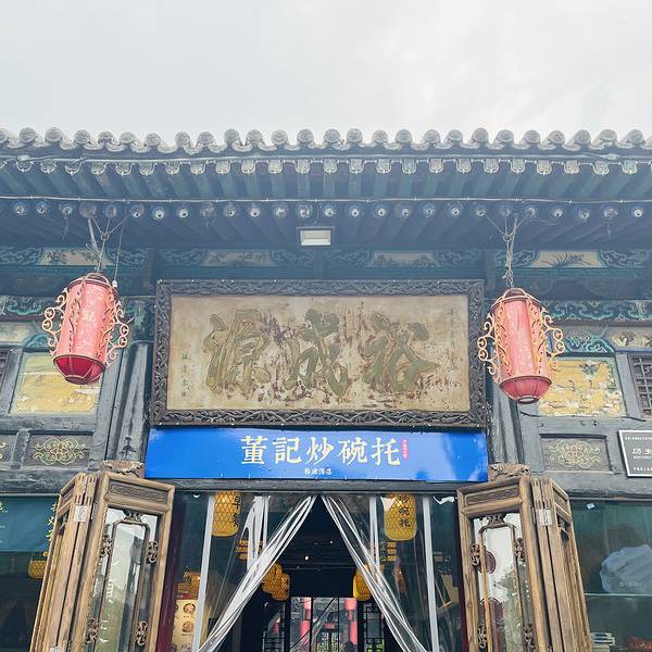 知道前面的“董记炒碗托”是有早餐,我们起了个大早,就为了吃早餐,选了油茶,油茶是当地的特色,小笼包等佛系早餐。 迎着古城的第一缕阳光,这时的美食也变得格外有意义。这里的小吃格外的丰富, 平遥本地人都在吃的,麻花火腿炒碗托,何尝不是我们远道而来的客人也想体验的。好吃的东西远不止碗托,炒莜面、炒拨烂子,应有尽有,这里最平遥。装修就像个小平遥古城,灯笼是浓缩了平遥菜品,明档可以看到炒碗托制作过程,甚至门面全部敞开,只为了让大家熟知,平遥炒碗托的制作过程。