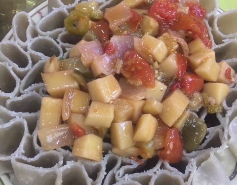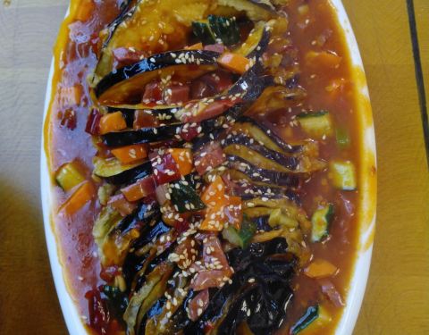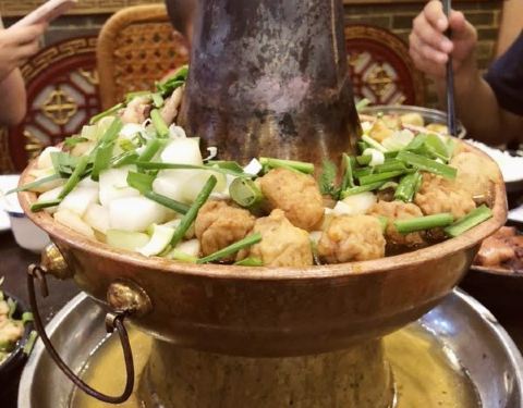 在平遥古城突然想吃个地道山西风味,觉得挂有民间小吃牌子的地方一定不会错,看店内环境还行,进吧。 经服务员推荐点了2个菜,羊肉烤姥姥和霸王茄龙。前者口味还不错,感觉到霸王茄龙一般般。 想不到的是小吃价格不小,52元的烤姥姥和68元的霸王茄龙。 价钱想起来真的是很霸王,民间小吃价格不太亲民。
