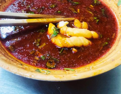 看着美食图片好诱人啊,以为和兰州拉面差不多的美味。等到端上来的时候才发现好辣好辣,真心不好吃!从此对山西的面有了畏惧感。不过牛筋还是挺劲道的。