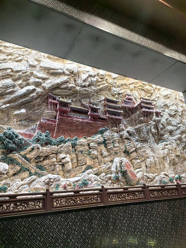 口味没的说,地道的大同美食,餐厅环境更是赞爆了,宛如一个再造的博物馆,每一处都是精心设计,囊括了大同的主要美景和宝物,最赞的是复制的藏书阁