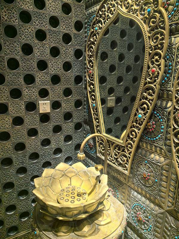 排了一百多桌~今天我们一定要吃到据说装修花了一个亿~确实奢华哪个饭店把卫生间装成这样😂 全铜的味道还可以 作文东北人 觉得不够咸 不够辣