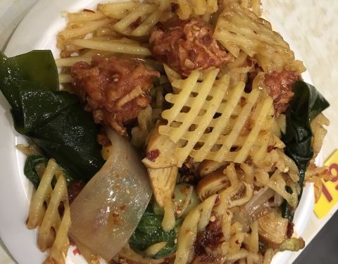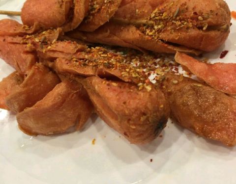 这次是刚刚出锅的麻辣拌。鲜香味美,很好吃,炸肠外表焦脆口味香浓,鱿鱼球蘸上蒜蓉辣椒鲜香美味不腻人,怎一个爽字了得。环境也行,很安静。但别赶上饭口点那可是需要排队的,可以静静的品尝也是一种幸福啊。