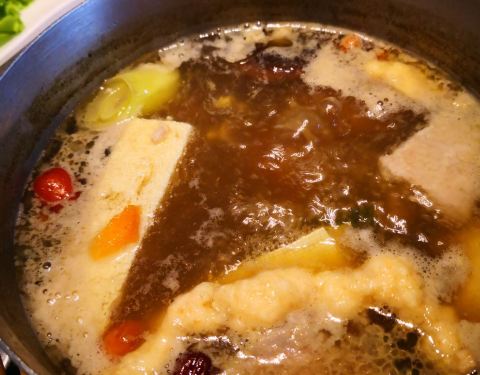 很特别的一种锅底,别家没有,青青的色,但麻辣鲜香不减,味道很浓郁正宗,整颗的青色花椒,料很足。特别是吃完后身上的味道不是那么重,感觉挺棒的。这家的肉比较新鲜,服务上很贴心周到,每次吃都比较过瘾!就是去晚了要排队,下次要提前预约了