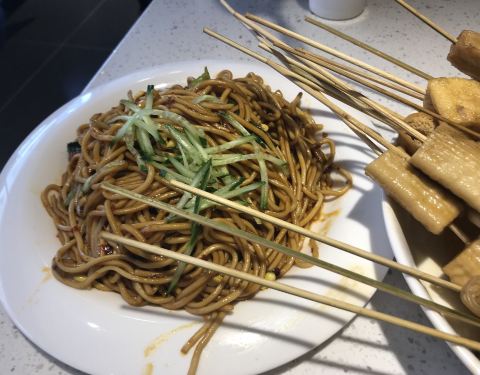 生意火爆的川菜馆,客流如潮,这里的铁板炒面很受欢迎,基本属于每桌必点菜。另外,麻辣串、麻辣烫味道也不错,而且这里的价格挺便宜。
