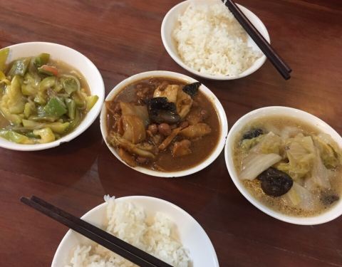 午餐十元,吃多少去让盛多少,不能浪费。可能吃饭的人太多,卖票的,打饭的人全都一脸的不耐烦。吃过饭自己洗碗,想想别人要用这个碗,我认真地洗了好几遍。